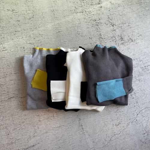 配色スリット袖ハイネックニット