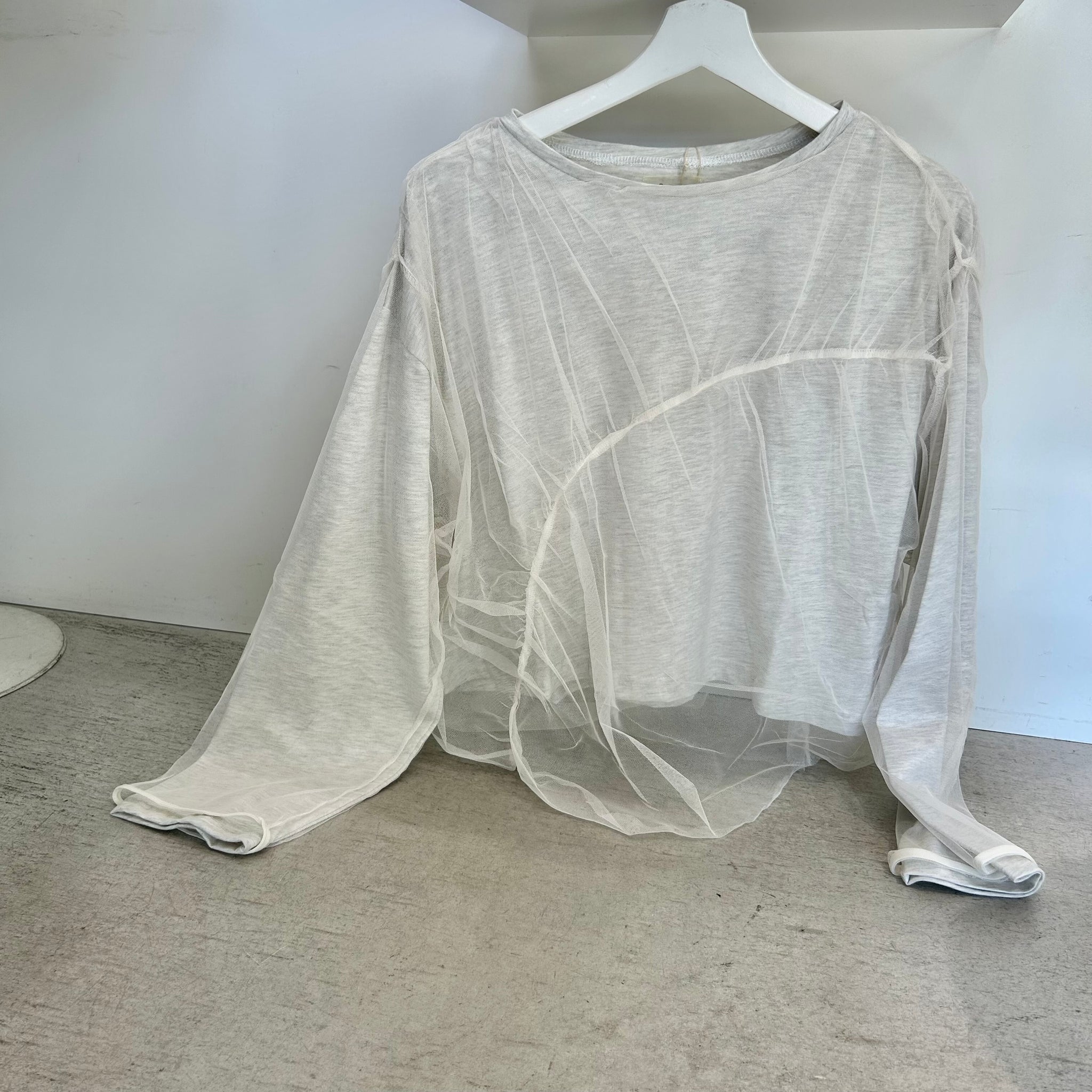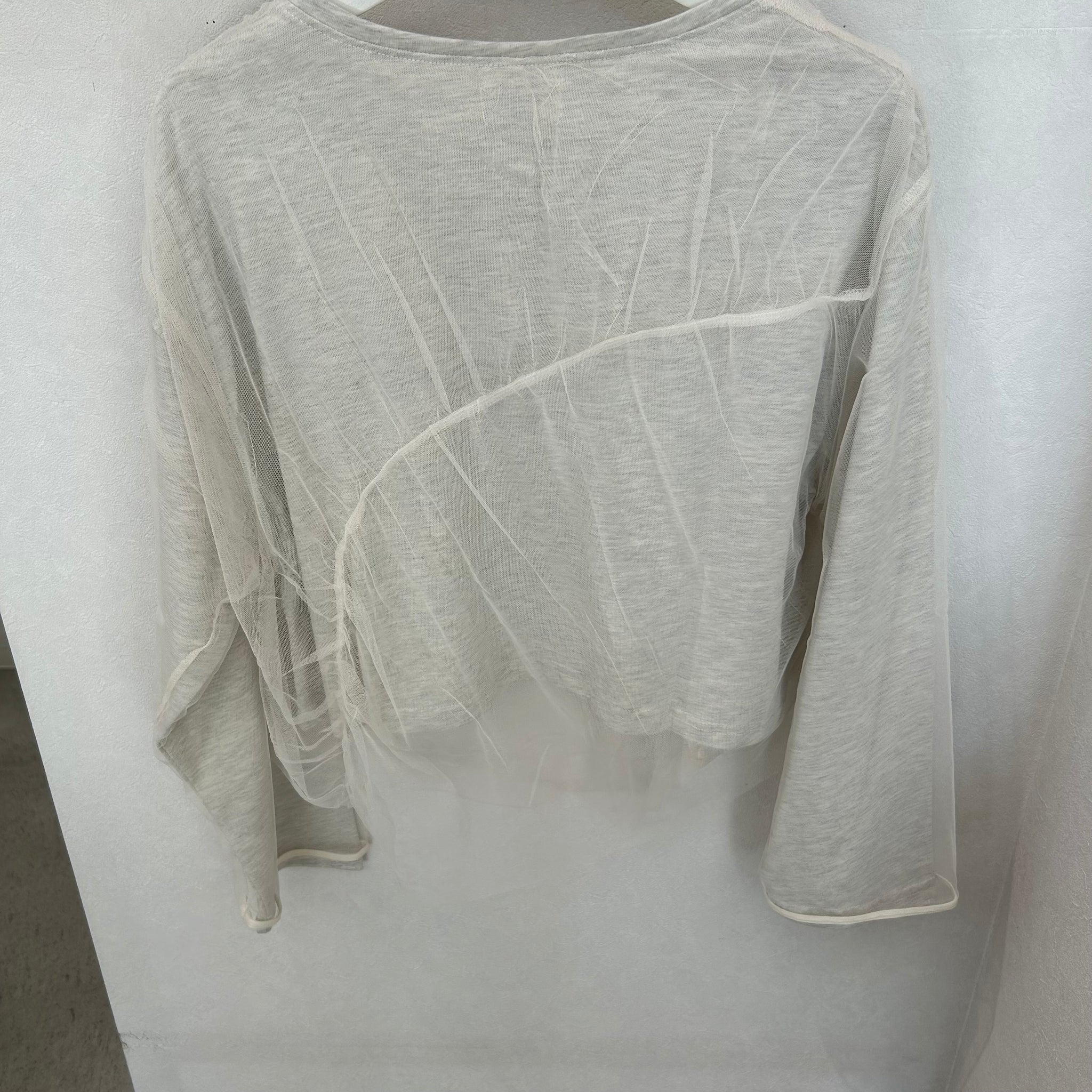 ウインターシーズンに人気を博したチュールレイヤード裏起毛スウェットが、ライトなカットソーバージョンになってNEWリリースしました!女性らしいギャザーを施したチュールで 1枚着でも着映え抜群です。袖口にはメリハリのつくパイピングを施しました。本体はアウトスタイルでも綺麗なバランスが取りやすい短めのレングスで、腰回りの華奢見えも期待できます。