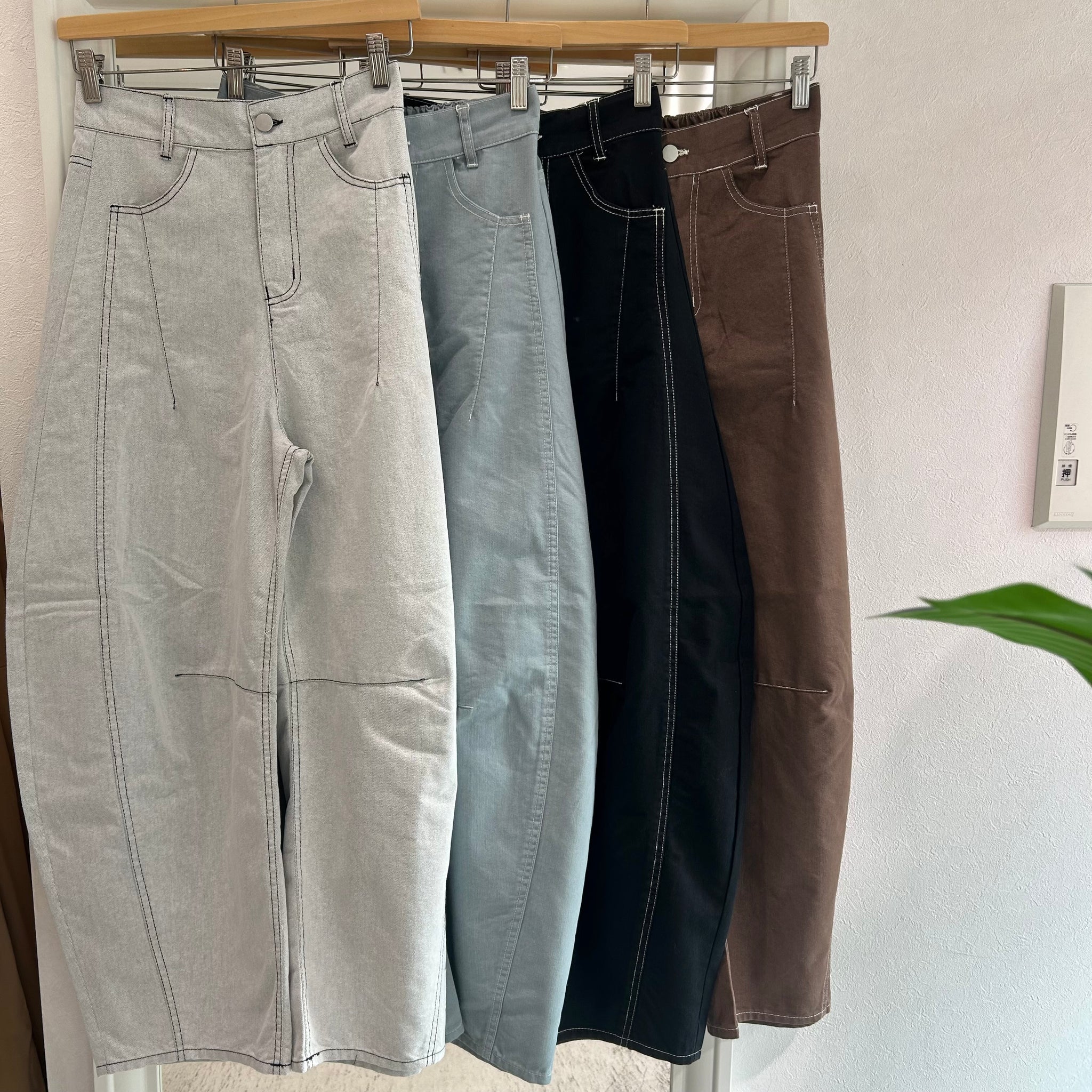 ツイル配色ステッチバレルパンツ