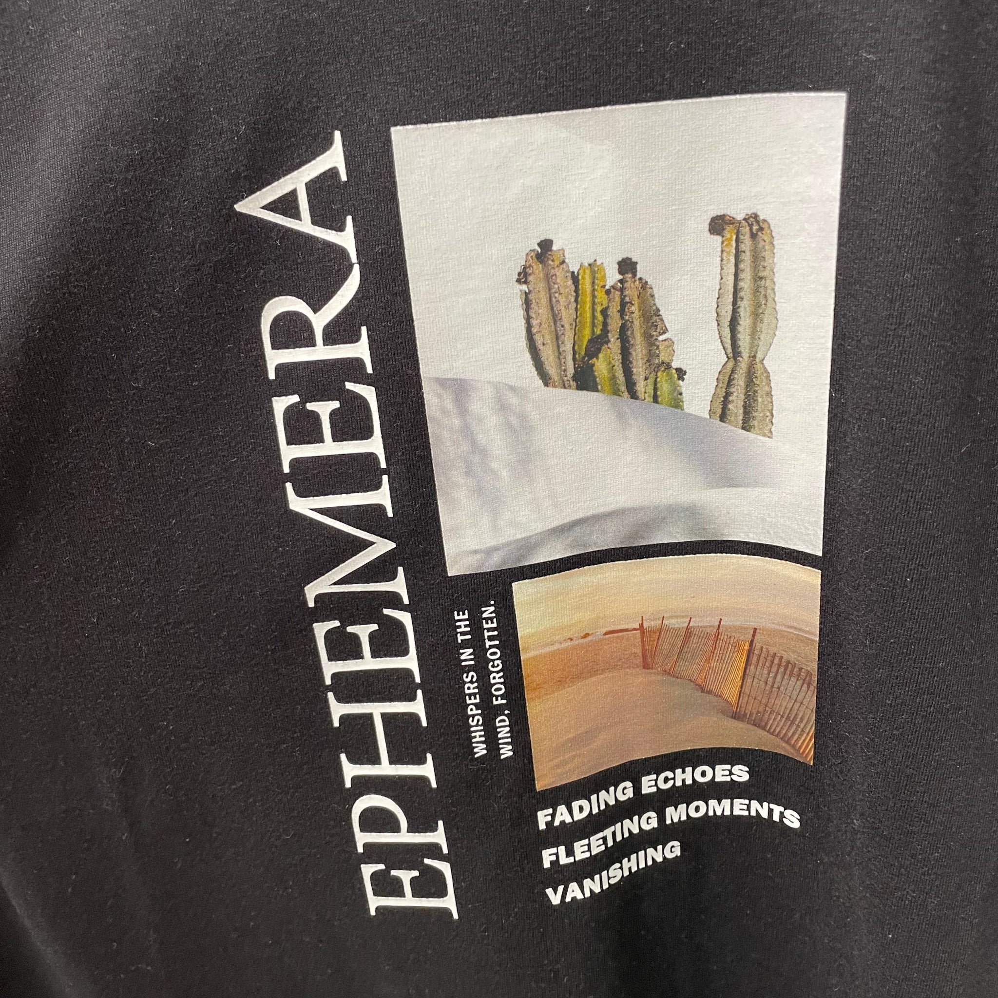 ややコンパクトなサイズ感なので、カジュアルな印象のプリントTシャツですが、合わせるアイテムでカジュアルになりすぎず、着用していただけます。