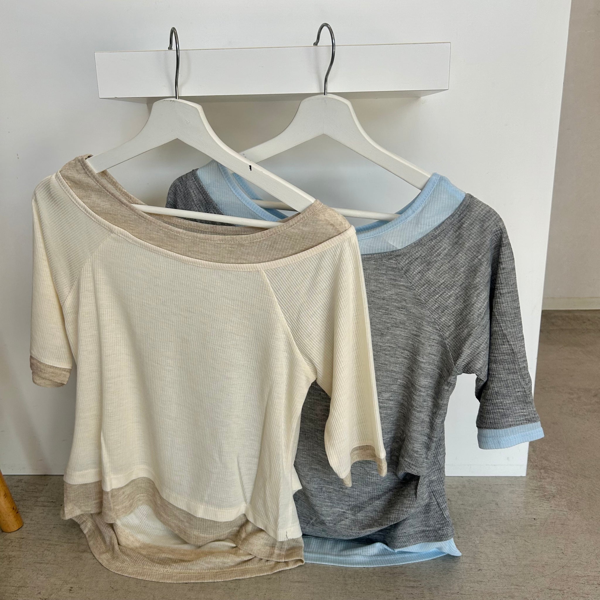 前後2WAYレイヤードオフショル風トップス