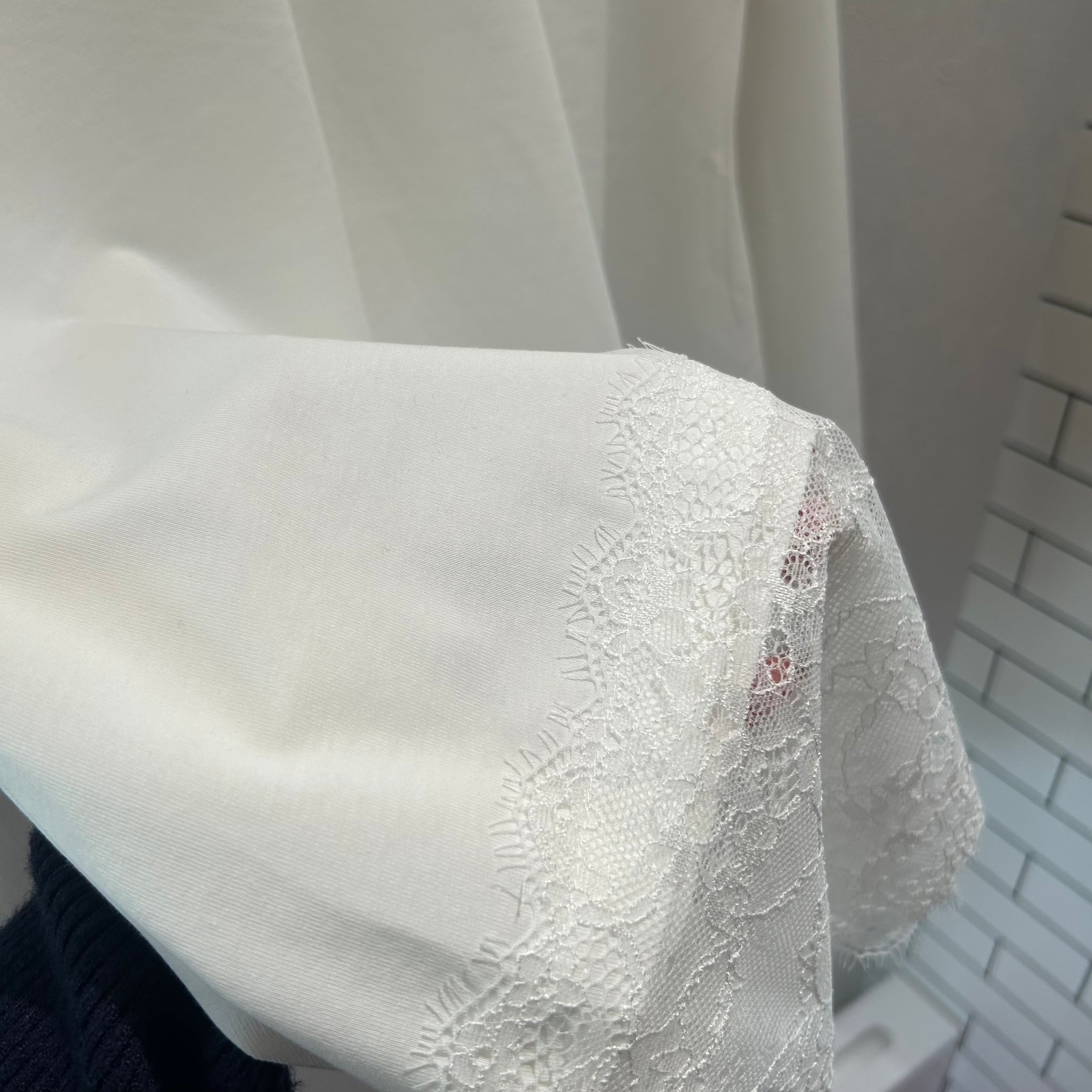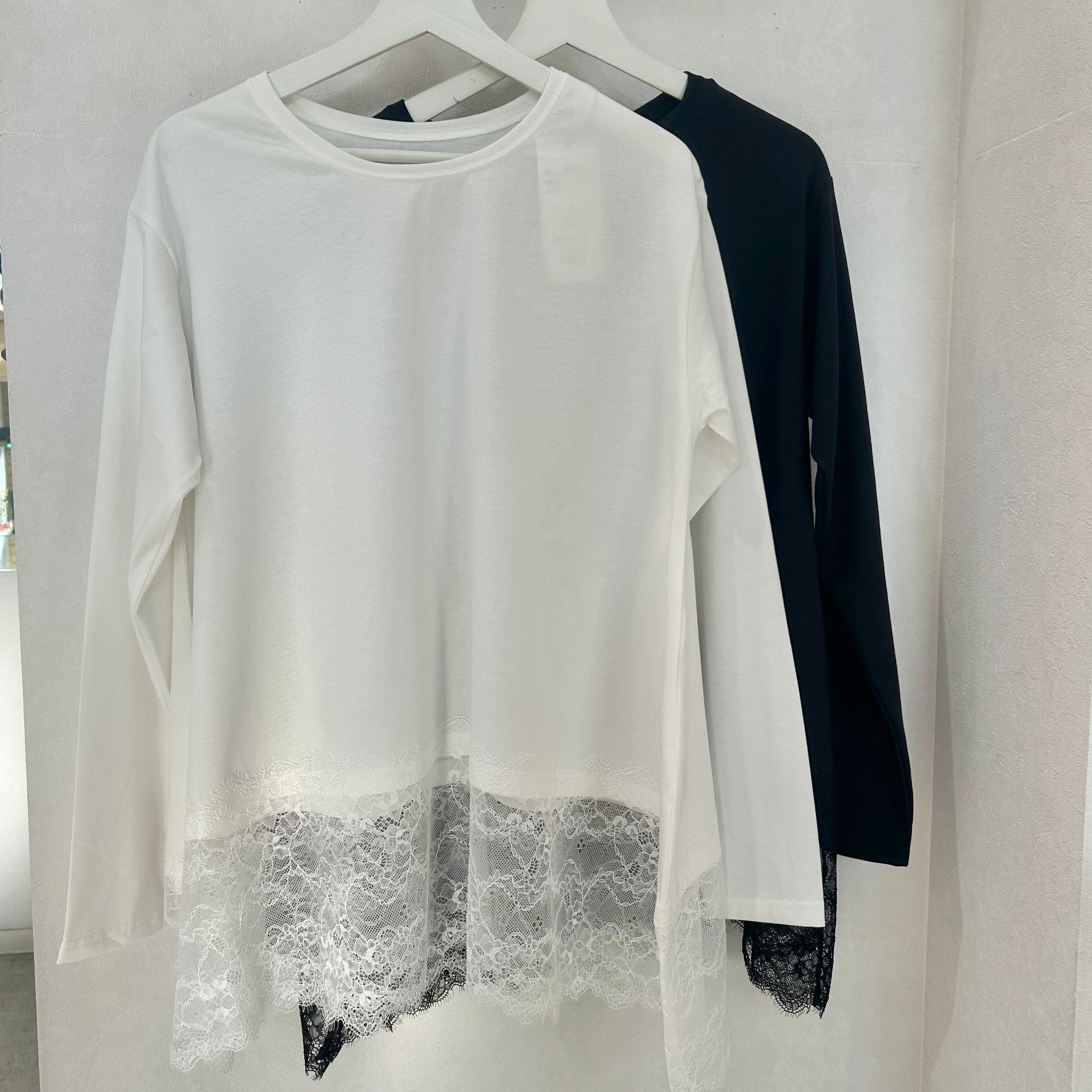 上からジレやジャケットを重ねてもレースがアクセントになり、シンプルながら華やぎのあるスタイルに